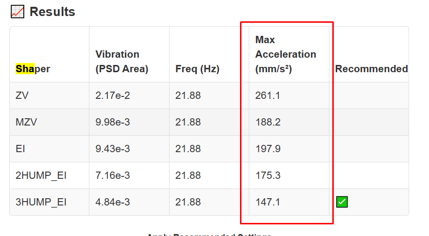 To avoid too much smoothing with 'zv', suggested max_accel <= 12200 mm/sec^2