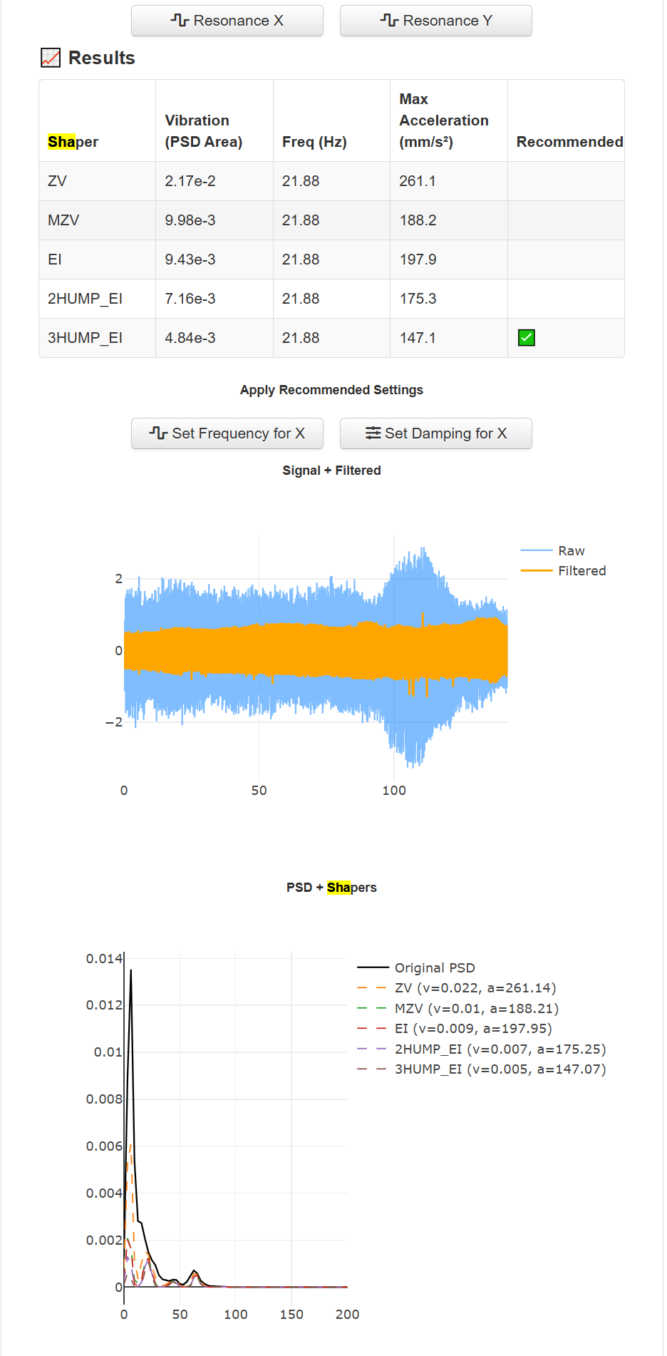 Recommended shaper is 2hump_ei @ 88.0 Hz