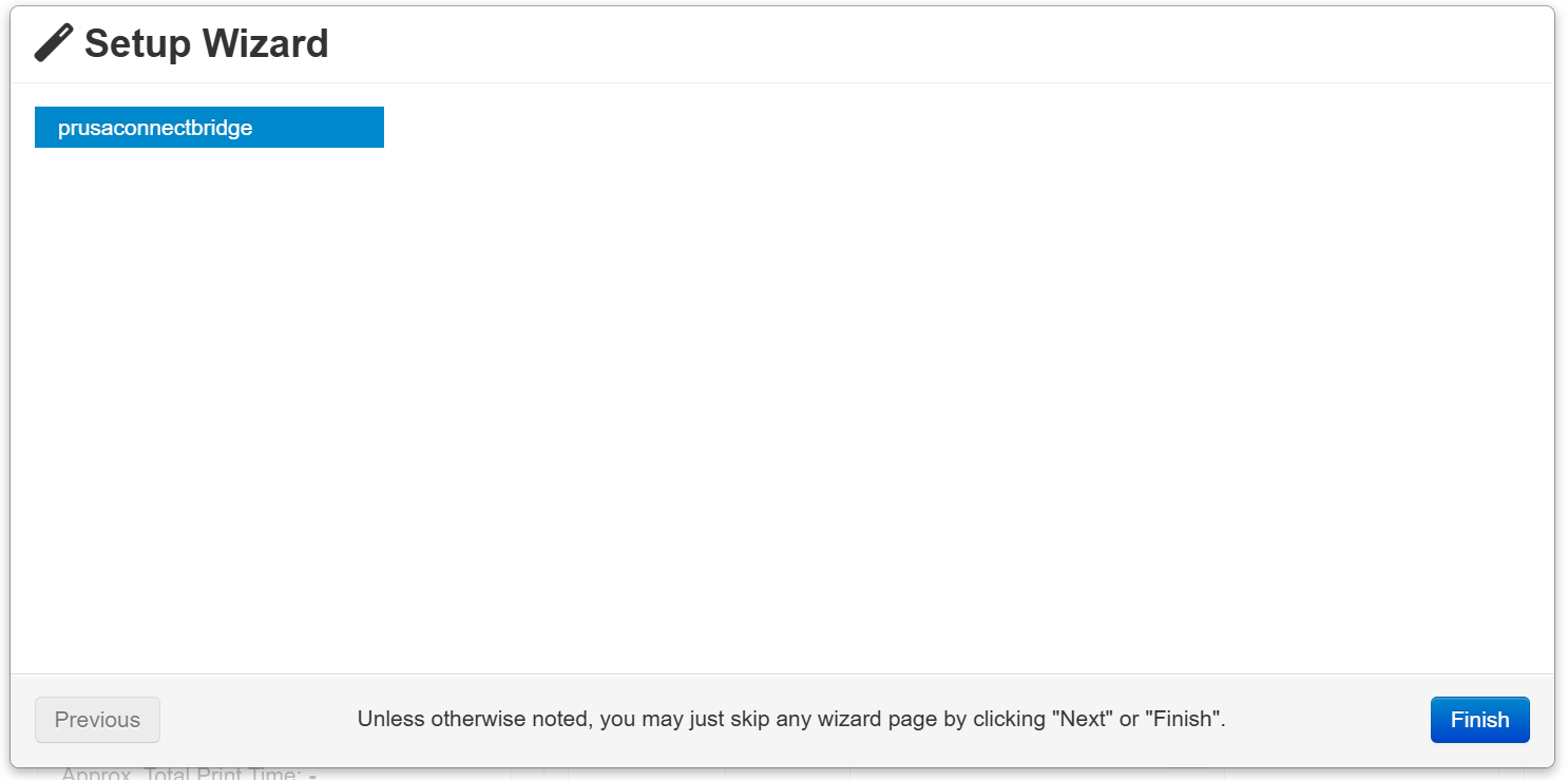 i uploaded the plugin "prusa connect bridge" and it gives me this menu and when i click finash it restarts and shows the same menu.